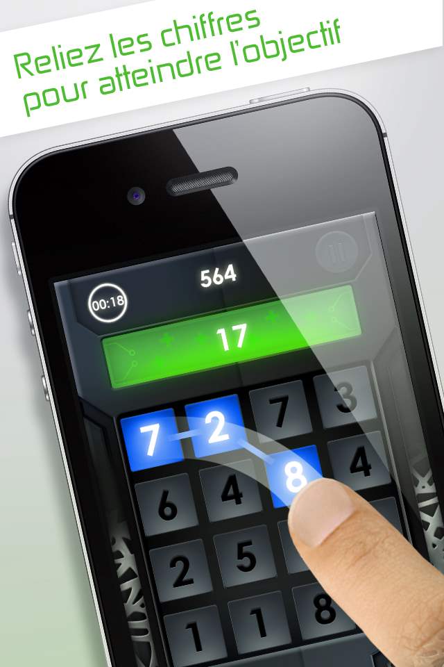 Le principe est simple. À partir d’un nombre affiché sur l’écran du supercalculateur, à l’aide des opérations arithmétiques que sont l’addition, la multiplication puis ensuite en combinant les deux types d’opérations, on doit relier des chiffres disposés aléatoirement sur un tableau en traçant des lignes à l’aide de son doigt. Lorsque deux chiffres ou plus sont reliés entre eux, l’opération arithmétique correspondante est effectuée. L’objectif de jeu étant d’obtenir le plus rapidement possible le nombre à calculer. Les chiffres du tableau se relient dans toutes les directions du moment qu’ils sont contigus : horizontalement, verticalement ou en diagonale. Plus on utilise de chiffres pour obtenir le bon résultat plus on marque de points. Une partie se joue en 1 minute 30, temps où le joueur doit atteindre un score minimum imposé par le jeu pour passer au niveau suivant et débloquer les autres modes du jeu. En effet au début, on ne joue qu’avec l’addition. Dès qu’on atteint un niveau suffisant, on pourra jouer aussi avec la multiplication puis la combinaison des deux opérations addition et multiplication.