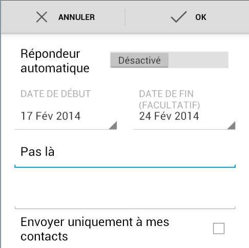 - Cliquer sur Répondeur automatique pour activer la fonctionnalité